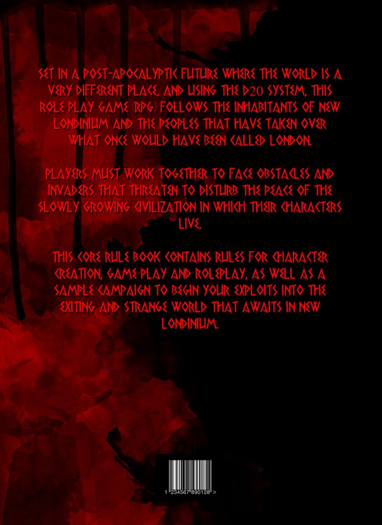 Set in a post-apocalyptic future where the world is a very different place, and using the d20 system, this role play game (RPG) follows the inhabitants of New Londinium and the peoples that have taken over what once would have been called London. Players must work together to face obstacles and invaders that threaten to disturb the peace of the slowly growing civilization in which their characters live.